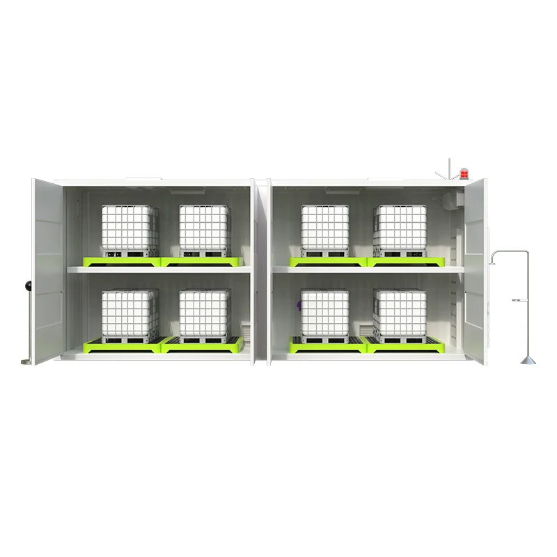 Складиште за привремено складиштење са спољним полицама отпорно на експлозију је идеално решење за проблем складиштења опасних материја у сложеним спољашњим окружењима.